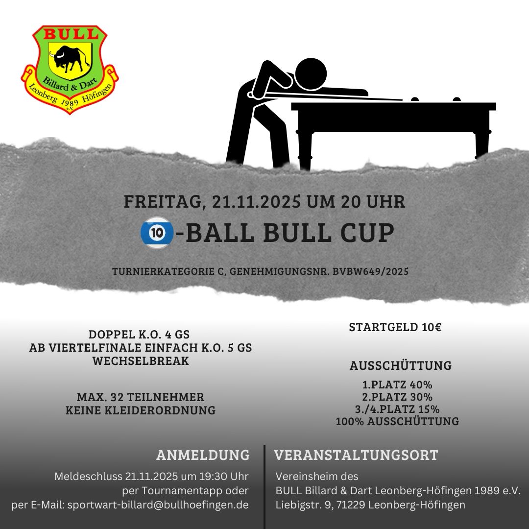 10-Ball BULL CUP 2025Freitag, 21. November 2025 |